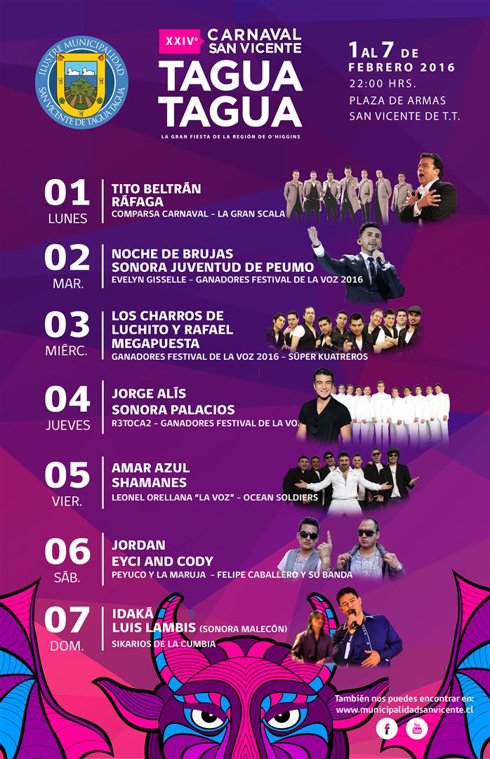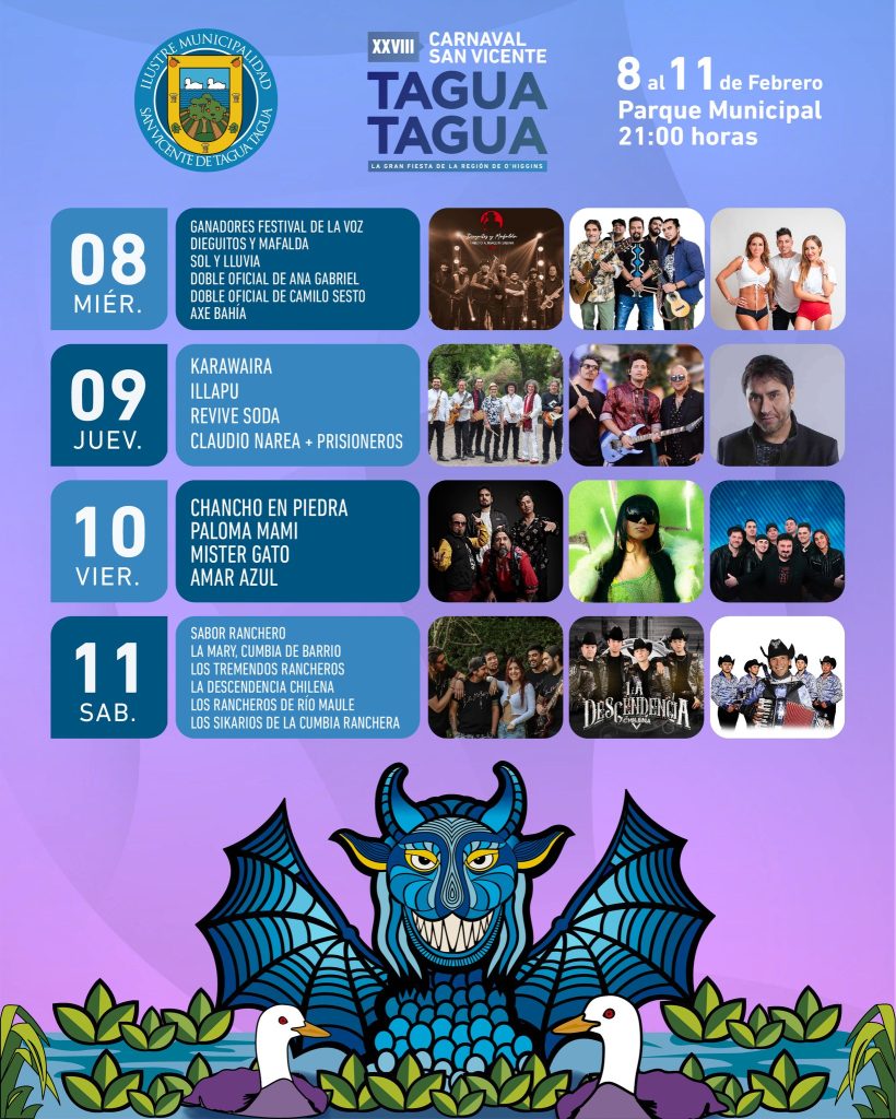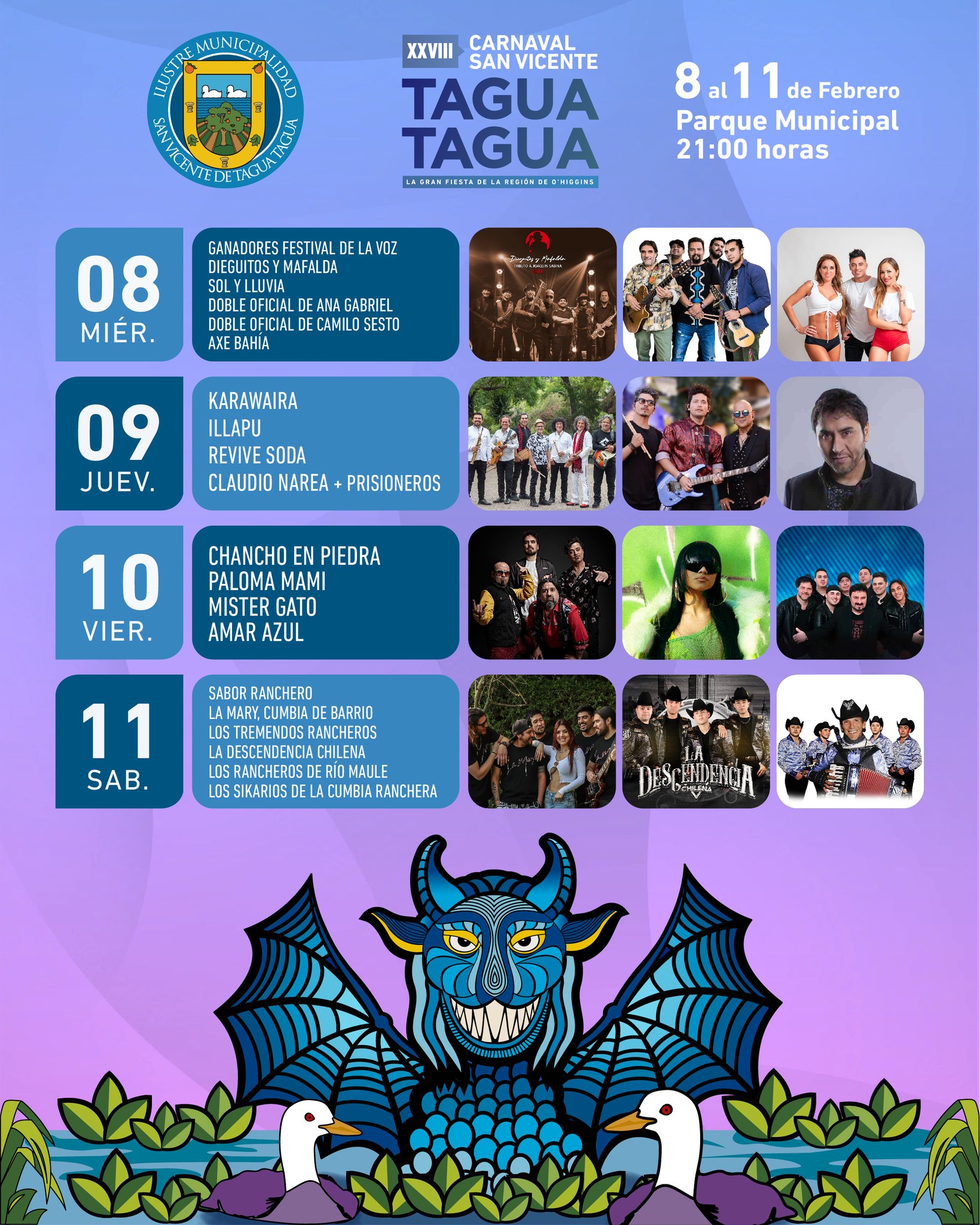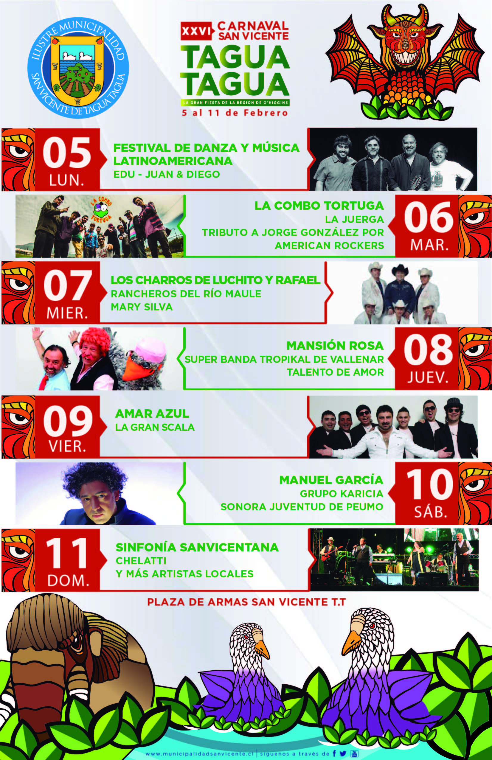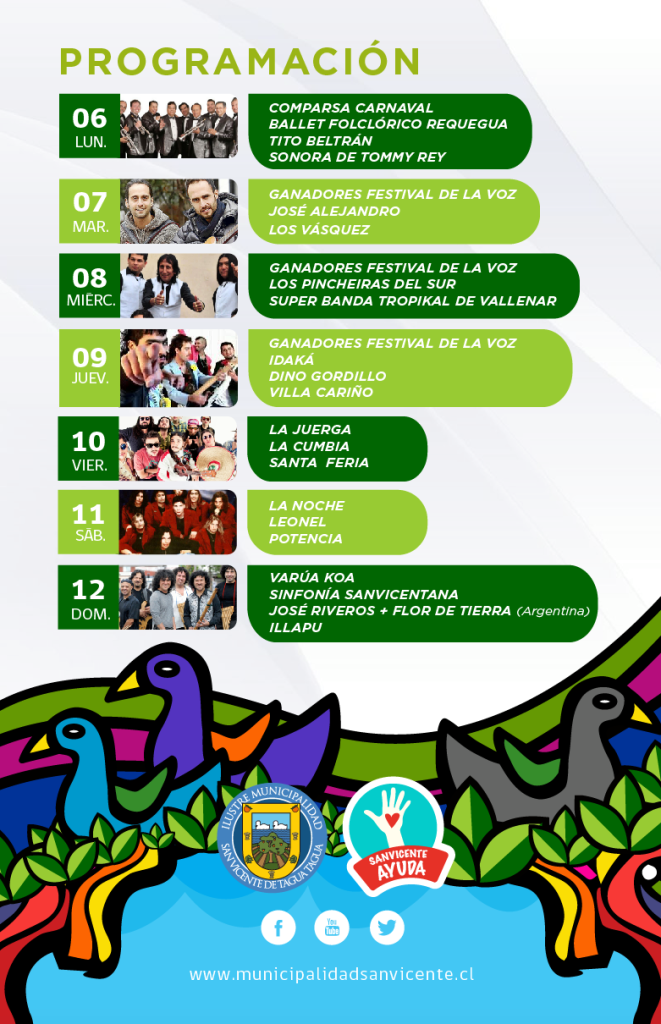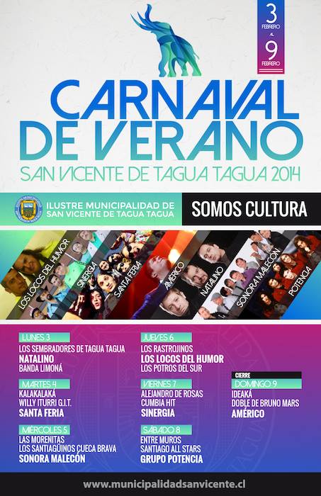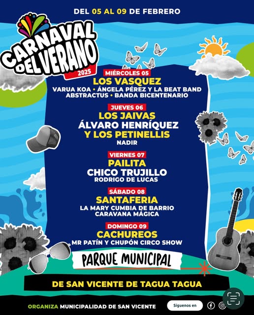Desde los años 80, los veranos sanvicentanos se han caracterizado por la realización del Carnaval de Verano, instancia que en las últimas dos décadas ha crecido como un gran festival musical, quizá el más importante del periodo estival en la región, con la presencia de destacados artistas nacionales e internacionales. Hace un par de días se publicó el programa de la versión 2025 de este evento, instancia que nos hace recordar los afiches de las últimas 12 ediciones.