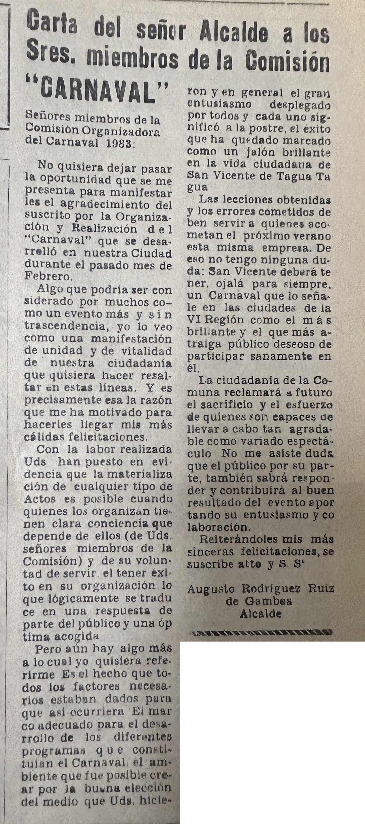 Fuente: Periódico La Voz de Tagua-Tagua, enero y febrero 1983