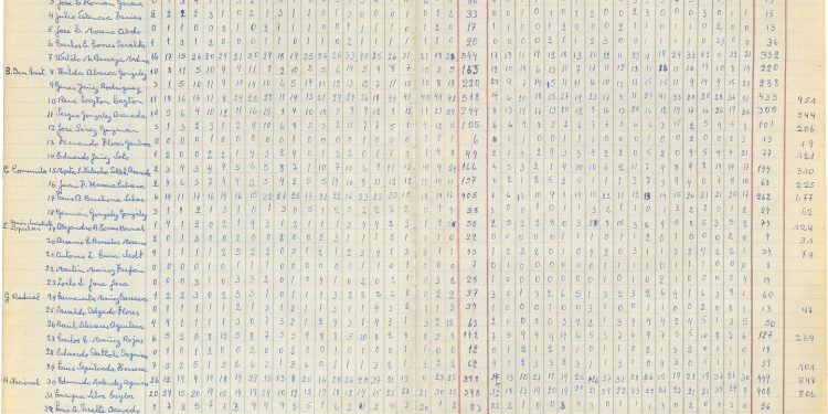 Acta manuscrita con resultados elecciones municipales de San Vicente, 1971