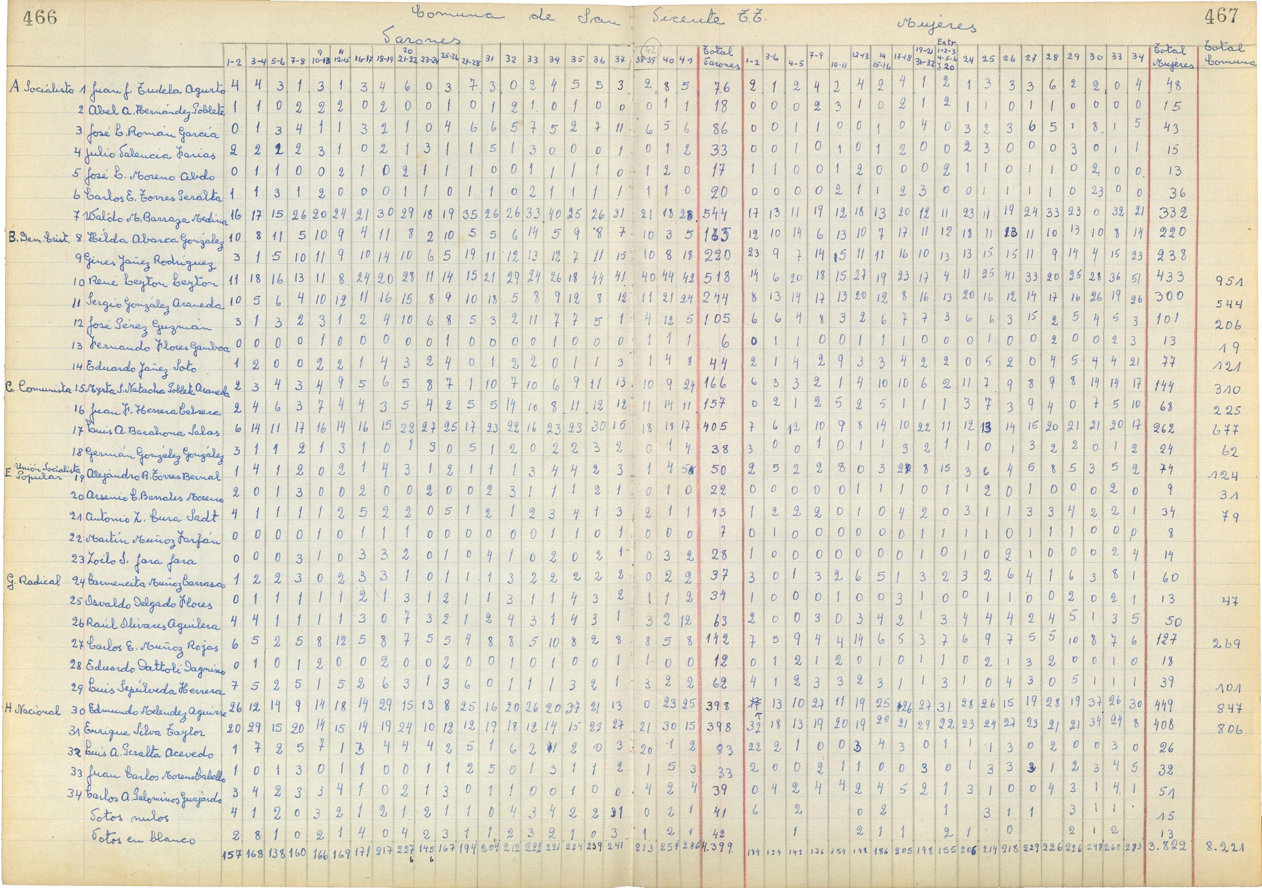Acta manuscrita con resultados elecciones municipales de San Vicente, 1971