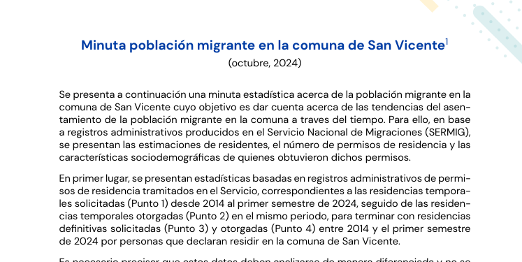 Minuto levantada por Migraciones Chile donde describe la situación de los extranjeros residentes en San Vicente en el años 2024.