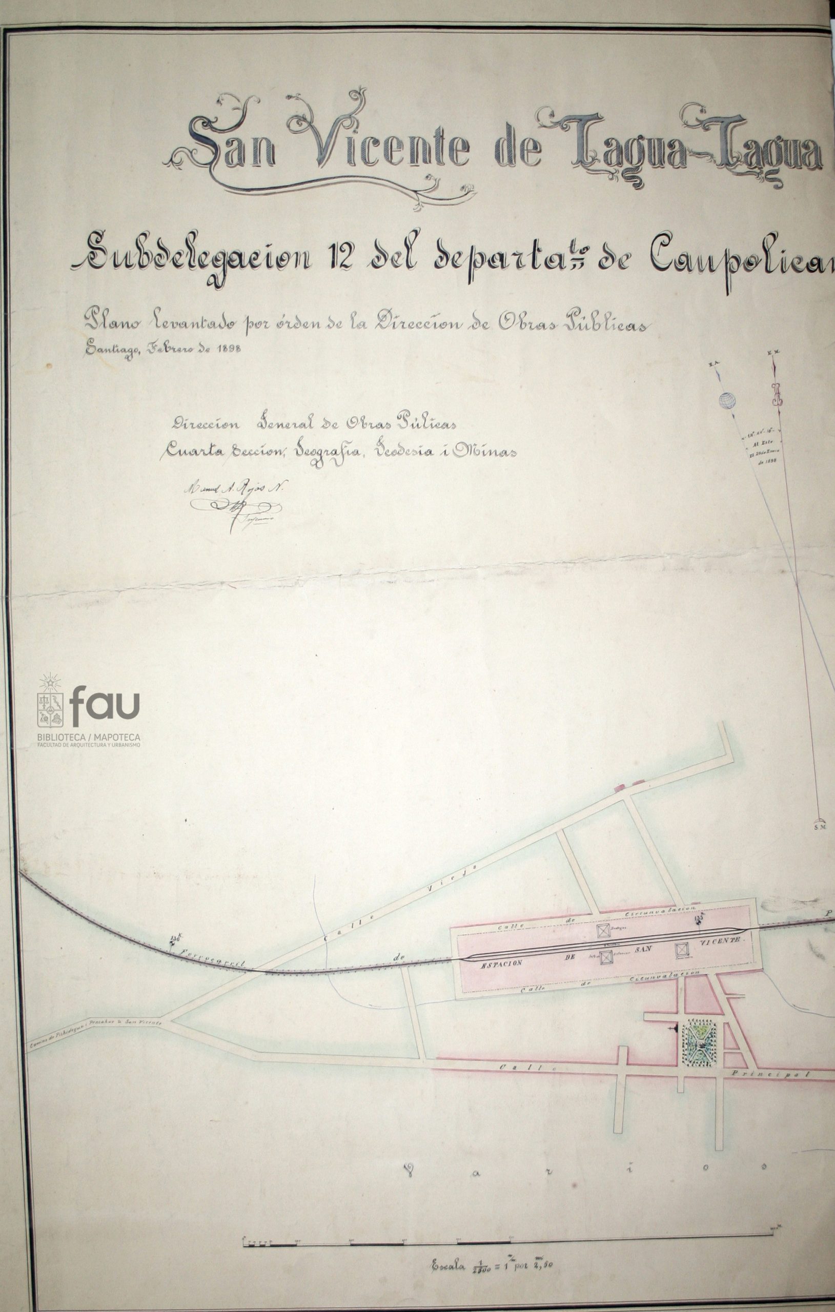 Se logra apreciar el sector central de San Vicente, especialmente la estación de ferrocarriles.