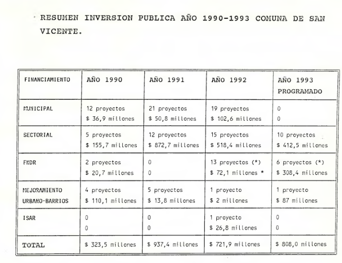 Resumen Inversión Pública Año 1990-1993 Comuna de San Vicente
